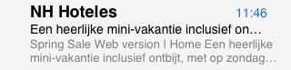 Vrijdag 15 maart om 11:46 verschijnt de nieuwsbrief van NH Hotels in mijn inbox. De timing lijkt keurig op het onderwerp afgestemd te zijn. Op vrijdag staat voor velen immers een mini-vakantie voor de deur: het weekend.