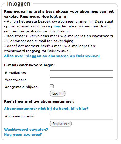 Voor huidige abonnees is de online versie door middel van het inloggen op de site ‘gratis’ beschikbaar. Een jaarabonnement voor het lezen van de dagelijkse nieuwsberichten op Reisrevue.nl kost €129,50.